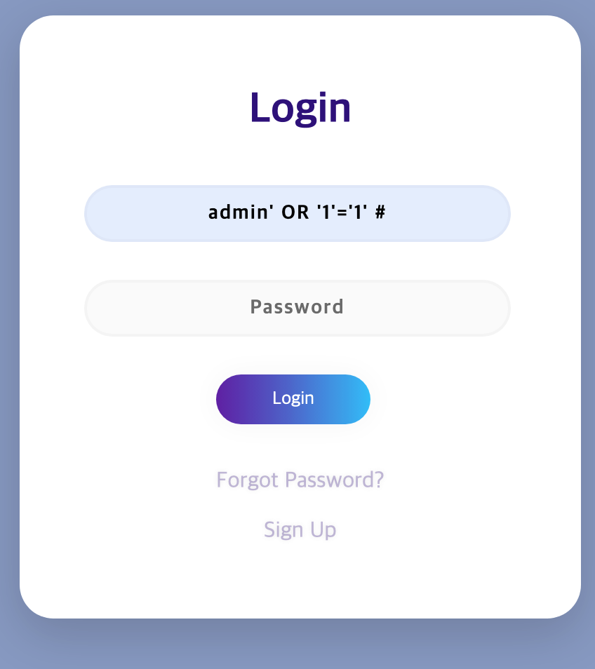 이건 SQL Injection의 원리를 설명하기 위해 취약하게 만든 로그인 페이지에 공격을 해서 가능했던 거고